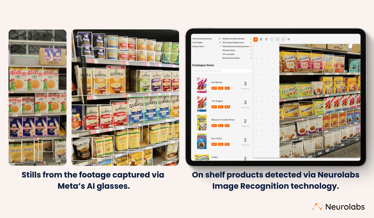 Recently, I walked into a supermarket with a pair of Meta Ray-Ban smart glasses. I recorded a shaky, blurred video of a cereal aisle. Later, I pulled a few stills from the footage, no editing, no stabilisation and ran them through our image recognition engine at Neurolabs.